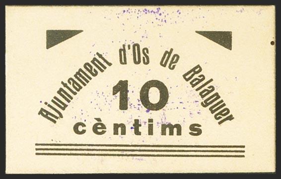 OS DE BALAGUER (LERIDA). 10 Céntimos. (1937ca). (González: 9056). Muy raro. EBC.