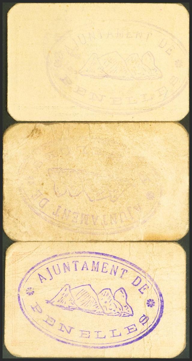 PENELLES (LERIDA). 25 Céntimos, 50 Céntimos y 1 Peseta. Junio 1937. (González: 9183/85). Inusual serie completa. MBC/MBC+.
