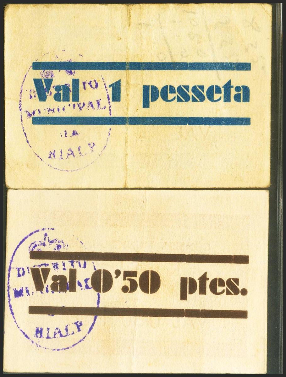 RIALP (LERIDA). 50 Céntimos y 1 Peseta. (1937ca). (González: 9595/96). Muy rara serie completa. MBC.