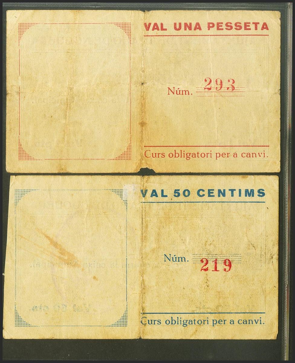 TRAGO DE NOGUERA (LERIDA). 50 Céntimos y 1 Peseta. (1937ca). (González: 10432/33). Muy rara serie completa. BC.