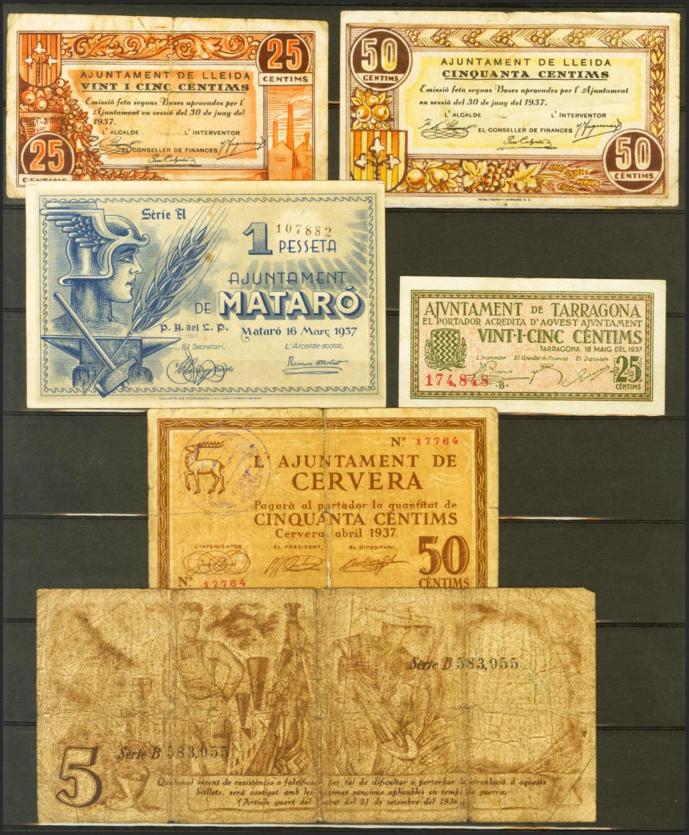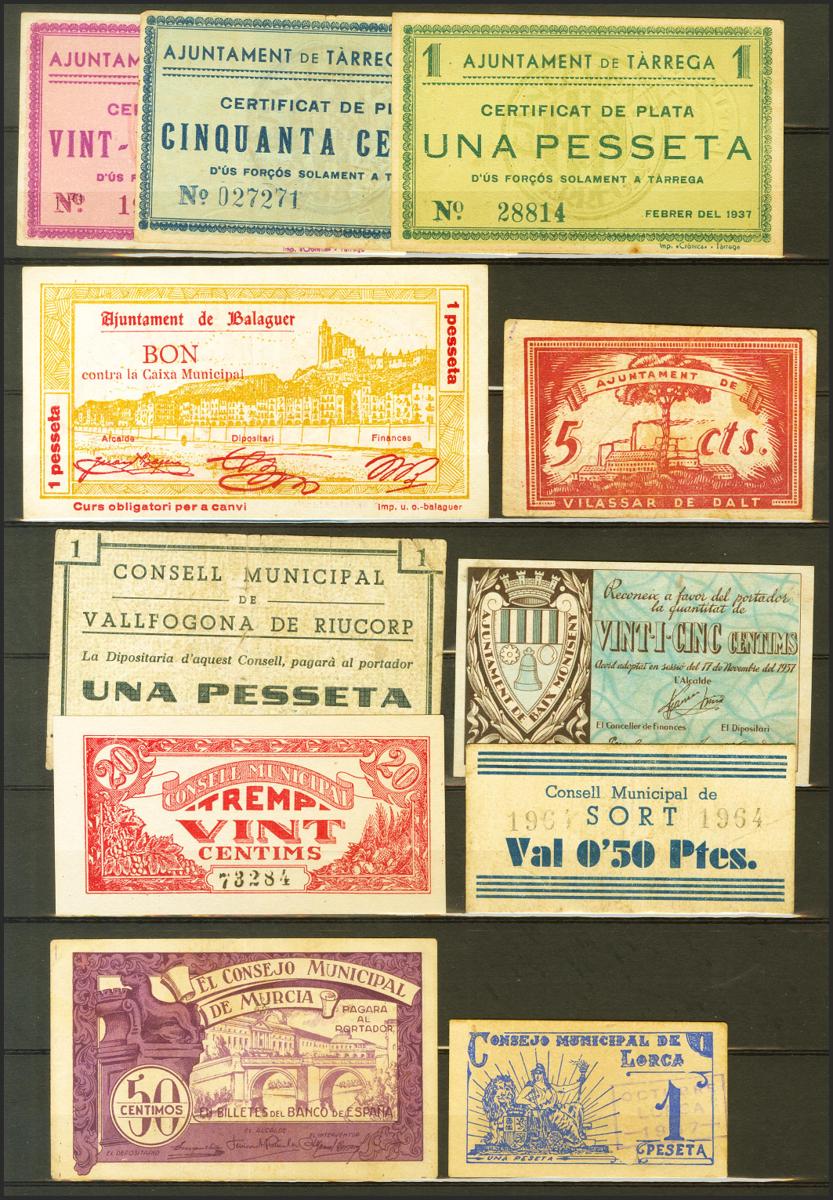 Conjunto de 31 billetes de la Guerra Civil, la mayoría de diferentes localidades, en diferentes calidades. EBC+/MBC-. A EXAMINAR.