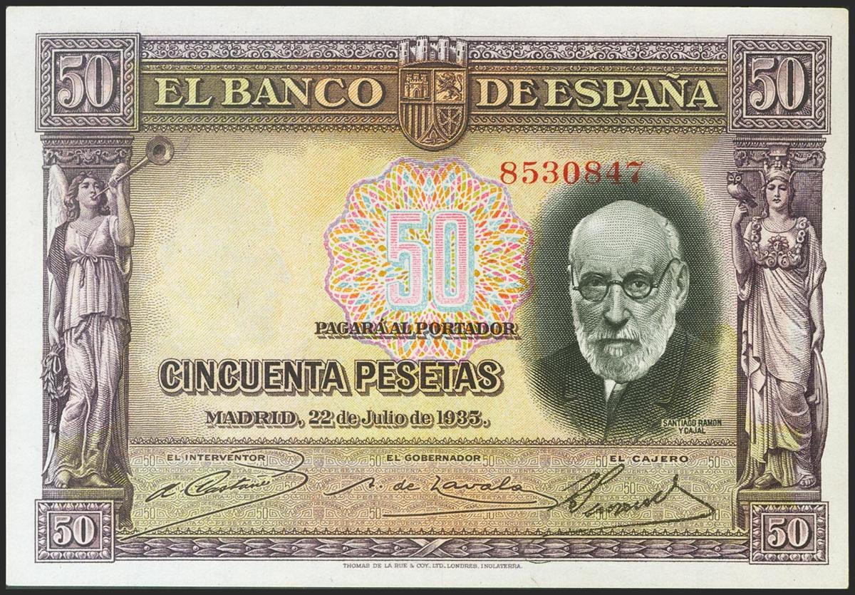 50 Pesetas. 22 de Julio de 1935. Sin serie. (Edifil 2021: 366). EBC.
