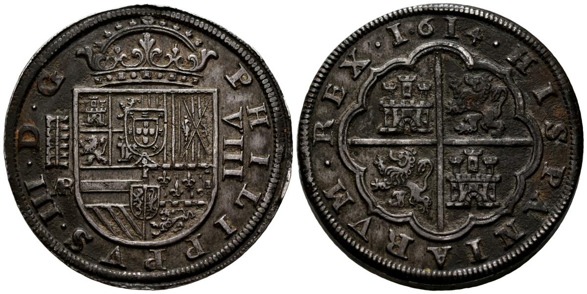 FELIPE III (1598-1621). 8 Reales. (Ar. 27,49g/41mm). 1614. Segovia AR. (Cal-2019-946). Acueducto de 5 arcos y 2 pisos. EBC-. Raro y bonito ejemplar.