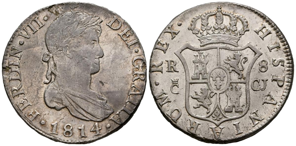 FERNANDO VII (1808-1833). 8 Reales. (Ar. 26,96g/38mm). 1814. Cádiz CJ. (Cal-2019-1154). MBC. Bonita pátina.