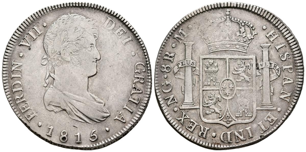 FERNANDO VII (18080-1833). 8 Reales. (Ar. 26,90g/40mm). 1815. Guatemala M. (Cal-2019-1228). MBC+/EBC-. Vanos de acuñación en reverso. Restos de brillo original.
