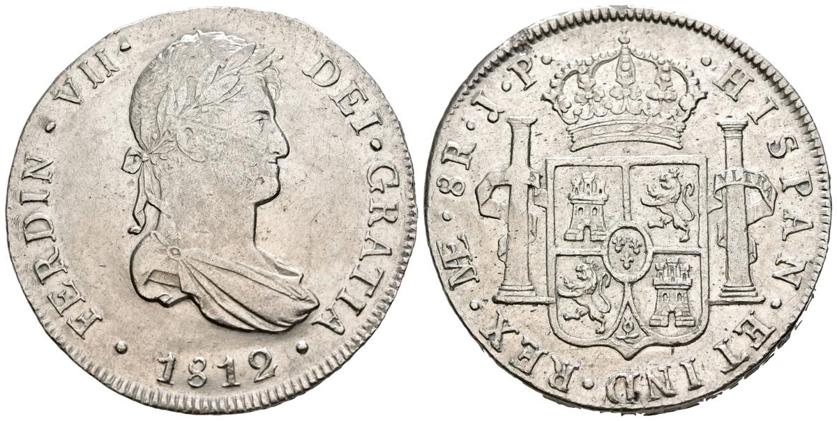 FERNANDO VII (18080-1833). 8 Reales. (Ar. 26,77g/39mm). 1812. Lima JP. (Cal-2019-1244). MBC+. Restos de brillo original.