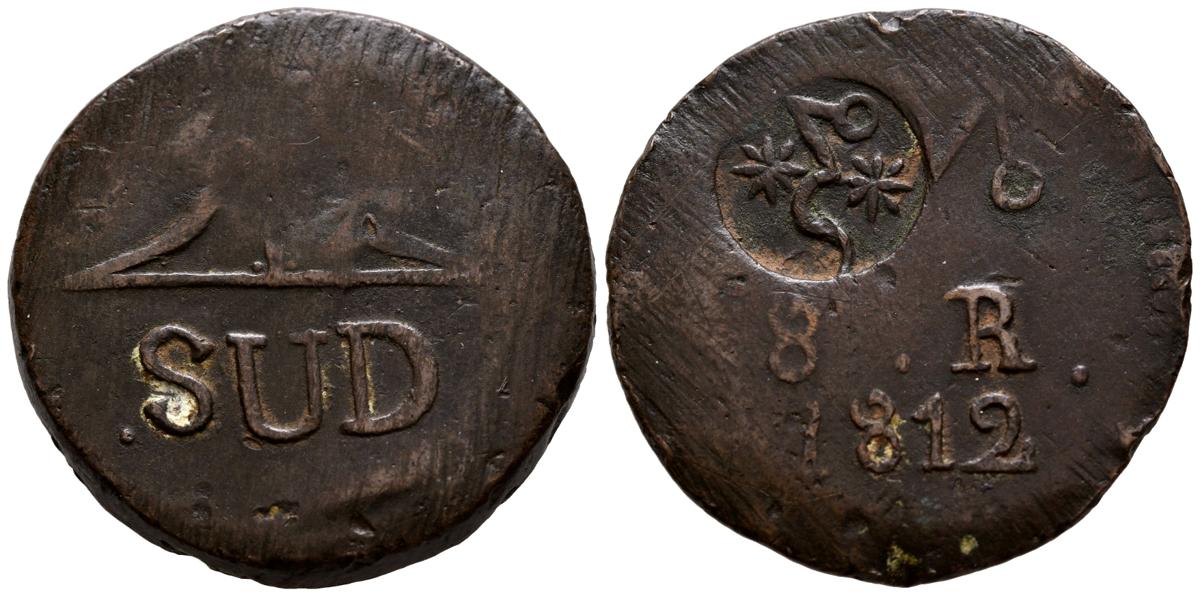 FERNANDO VII (1808-1833). 8 Reales. (Ae. 30,87g/37mm). 1812. Morelos. (Cal-2019-1345). Sin adornos. Resello MO entre estrellas (De Mey 890) y puntos dentro de arco. MBC+. Acuñación insurgente.