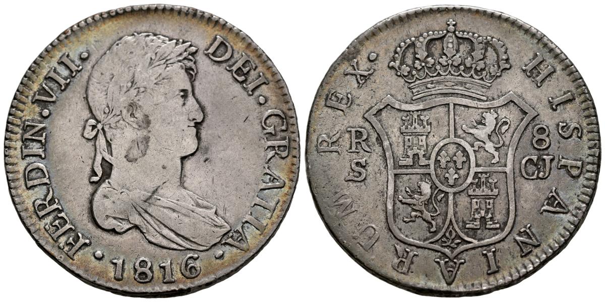FERNANDO VII (1808-1833). 8 Reales. (Ar. 27,07g/39mm). 1816. Sevilla CJ. (Cal-2019-1417). Busto laureado. MBC-.