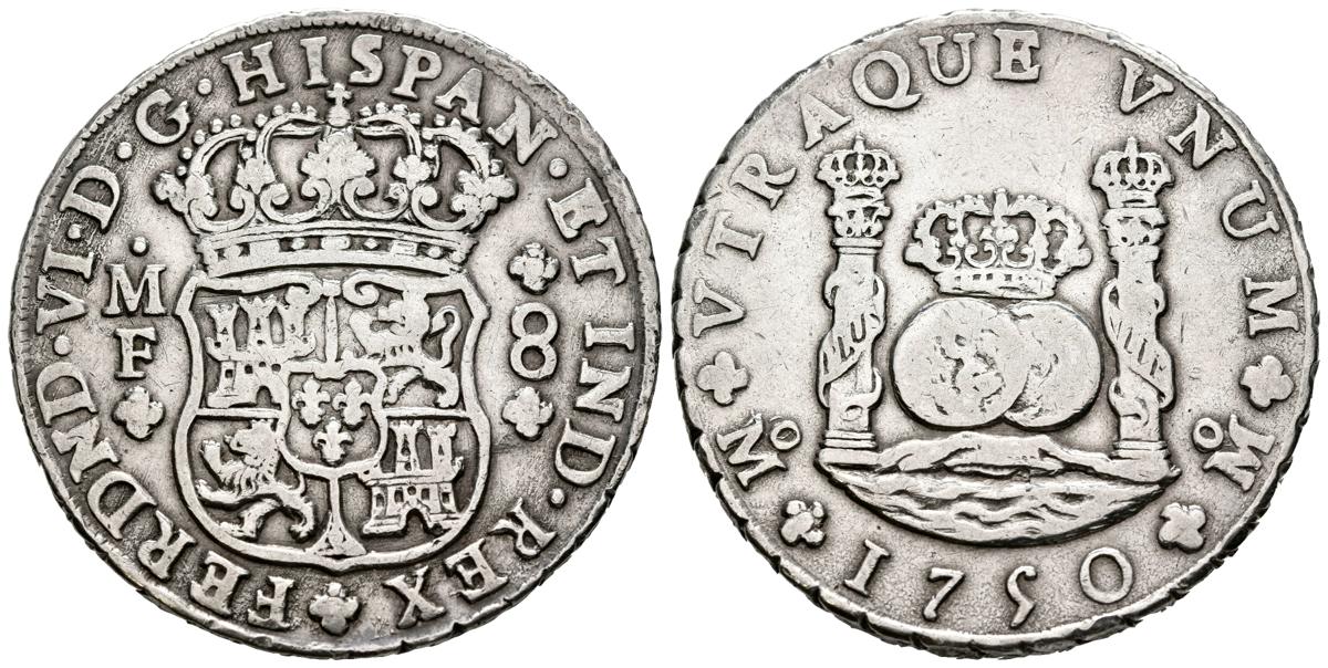 FERNANDO VI (1746-1759). 8 Reales. (Ar. 26,61g/39mm). 1750. México MF. (Cal-2019-474). MBC-. Limpiado.