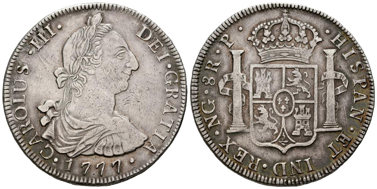 CARLOS III (1759-1788). 8 Reales. (Ar. 26,82g/40mm). 1777. Guatemala P. (Cal-2019-1009). MBC+. Escaso ejemplar.