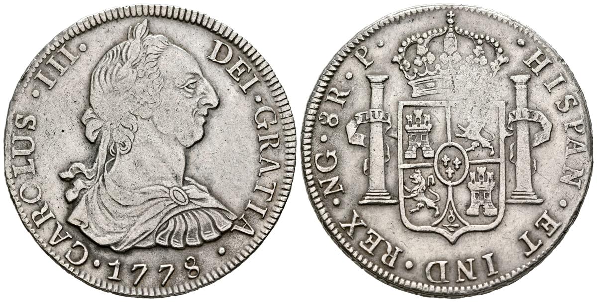 CARLOS III (1759-1788). 8 Reales. (Ar. 26,87g/40mm). 1778. Guatemala P. (Cal-2019-1010). MBC. Escaso ejemplar.