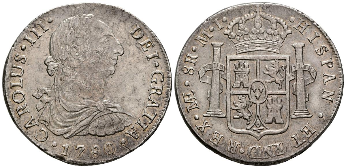 CARLOS III (1759-1788). 8 Reales. (Ar. 26,85g/40mm). 1780. Lima MI. (Cal-2019-1047). EBC-. Bonita pátina. Escaso ejemplar así.