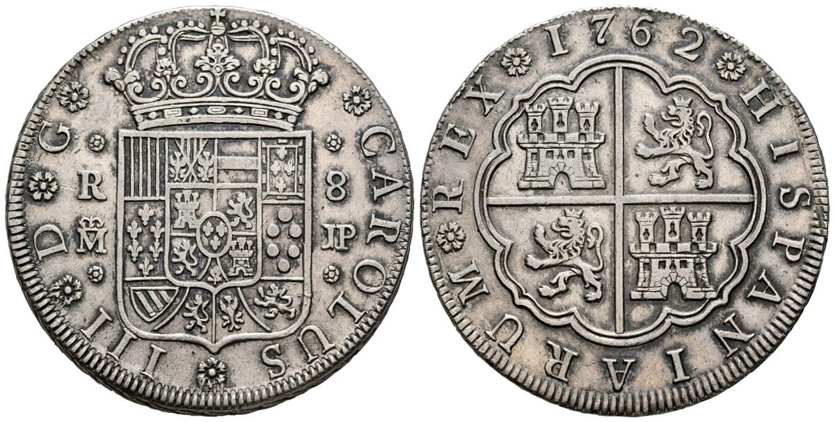 CARLOS III (1759-1788). 8 Reales. (Ar. 27,08g/39mm). 1762. Madrid JP. (Cal-2019-1061). EBC-. Bonito ejemplar, escaso así.Ex Soler Y Llach 1088. 15/10/2015, Nº Lote 687.