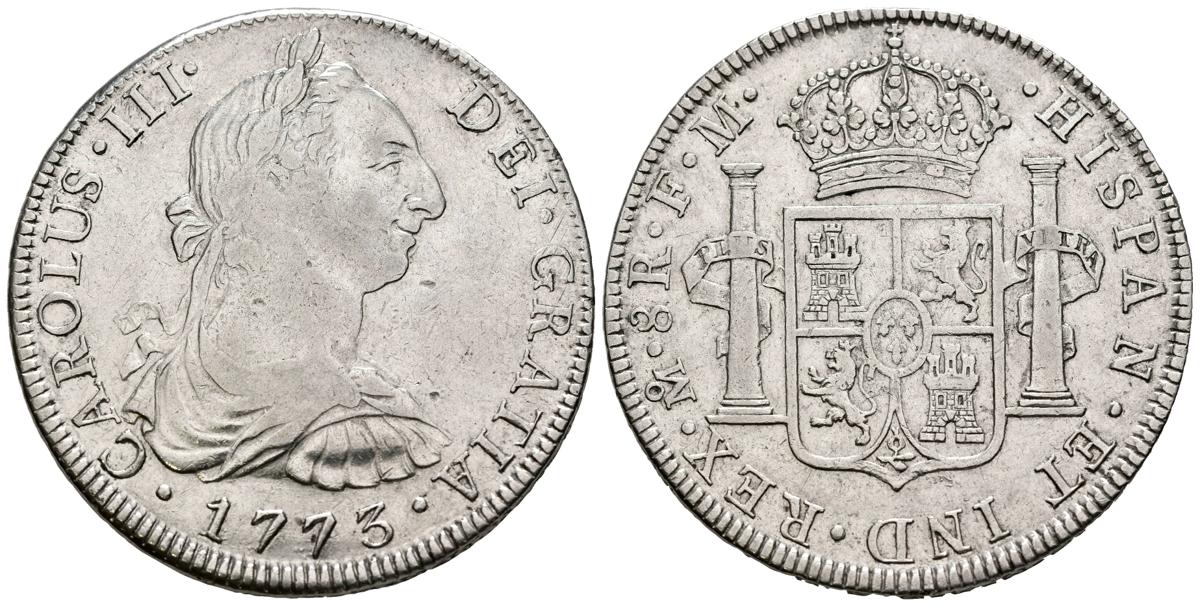 CARLOS III (1759-1788). 8 Reales. (Ar. 26,93g/39mm). 1773. México FM. (Cal-2019-1107). MBC.