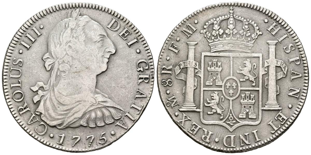 CARLOS III (1759-1788). 8 Reales. (Ar. 26,22g/39mm). 1775. México FM. (Cal-2019-1109). MBC.