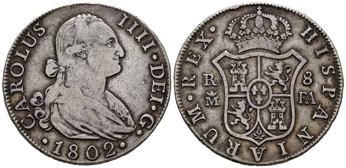 CARLOS IV (1788-1808). 8 Reales. (Ar. 27,08g/39mm). 1802. Madrid FA. (Cal-2019-939). BC+.