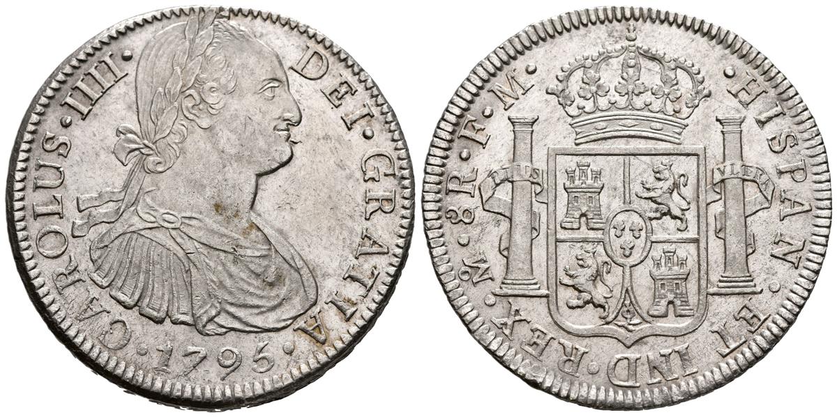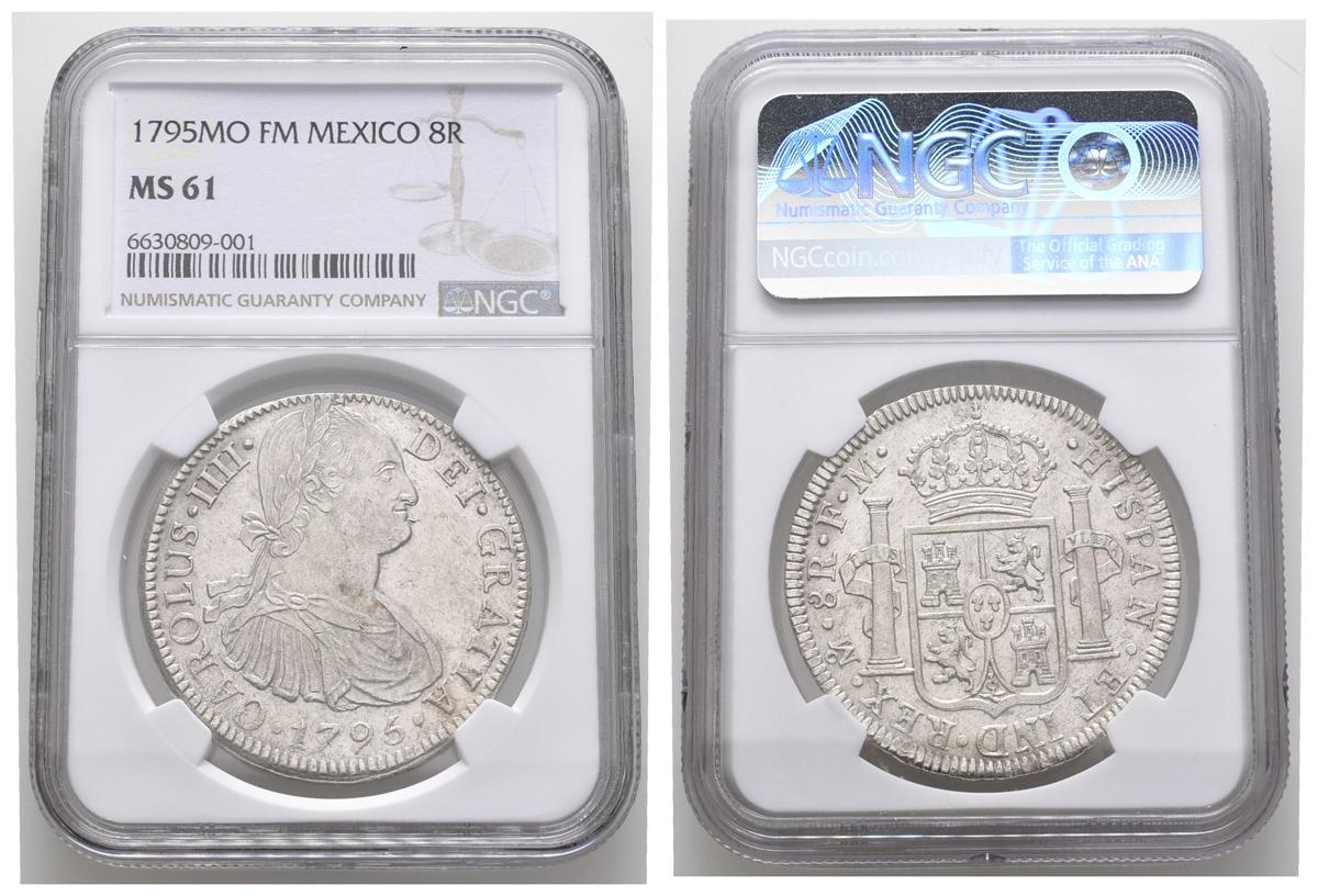 CARLOS IV (1788-1808). 8 Reales (Ar. 27,00g/40mm). 1795. México FM. (Cal-2019-958). Encapsulado por NGC MS61. Precioso ejemplar, escaso así.