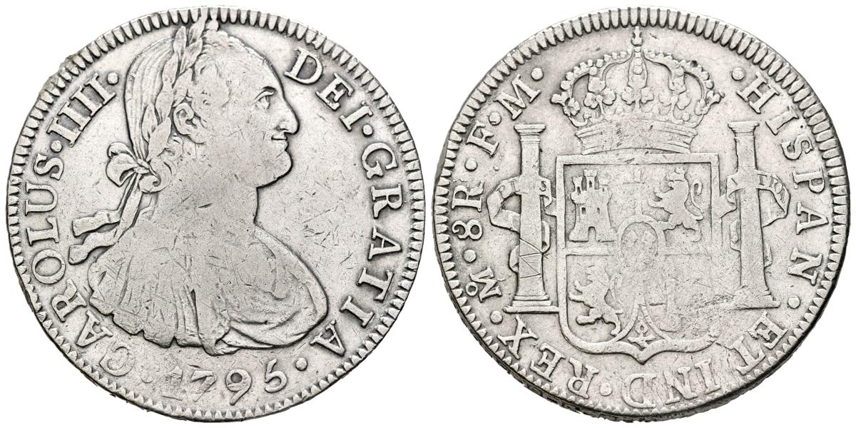 CARLOS IV (1788-1808). 8 Reales. (Ar. 26,84g/39mm). 1795. México FM. (Cal-2019-958). MBC-. Marquitas.
