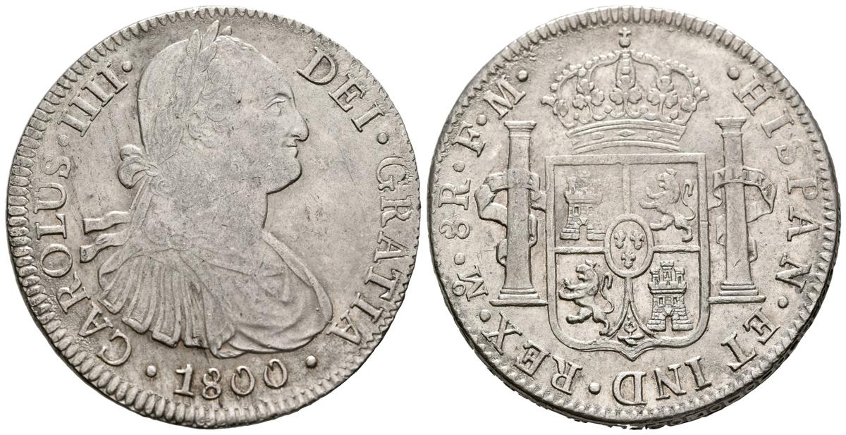 CARLOS IV (1788-1808). 8 Reales. (Ar. 26,93g/40mm). 1800. México FM. (Cal-2019-965). MBC+/EBC-. Restos de brillo original. Bonito ejemplar, escaso así.