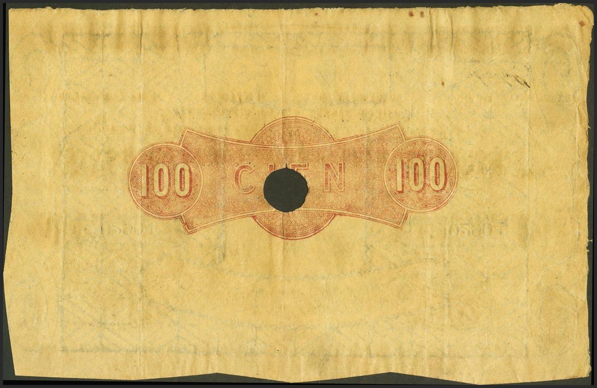 100 Reales. 14 de Mayo de 1857. Banco de Zaragoza. Serie A, con taladro y con firmas. (Edifil 2017: 126A). Inusual. MBC+.