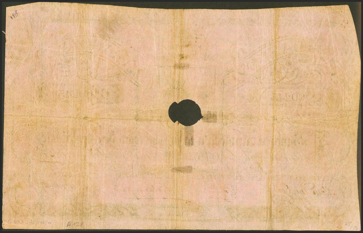 500 Reales. 14 de Mayo de 1857. Banco de Zaragoza. Serie C, con taladro y con firmas. (Edifil 2017: 128A). Inusual. MBC+.