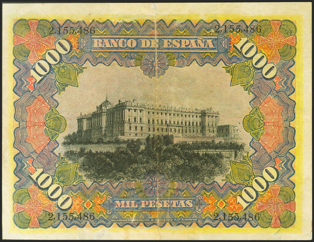 1000 Pesetas. 15 de Julio de 1907. Sin serie. (Edifil 2021: 322). Inusual, reparado y con puntitos de aguja. MBC.