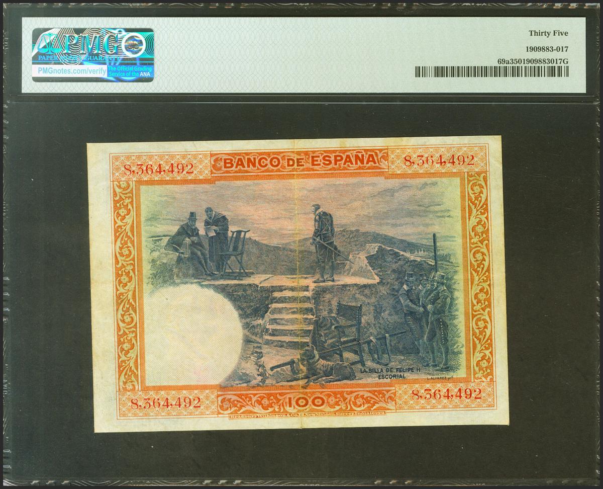 100 Pesetas. 1 de Julio de 1925. Sin serie. (Edifil 2021: 323, Pick: 69a). Inusual. EBC-. Encapsulado PMG35.