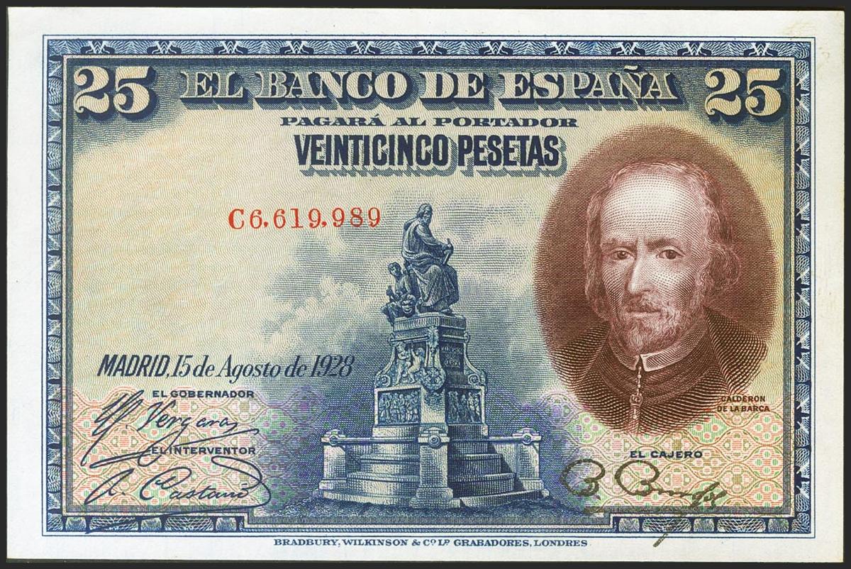 25 Pesetas. 15 de Agosto de 1928. Serie C. (Edifil 2021: 353). Apresto original. SC.