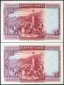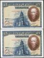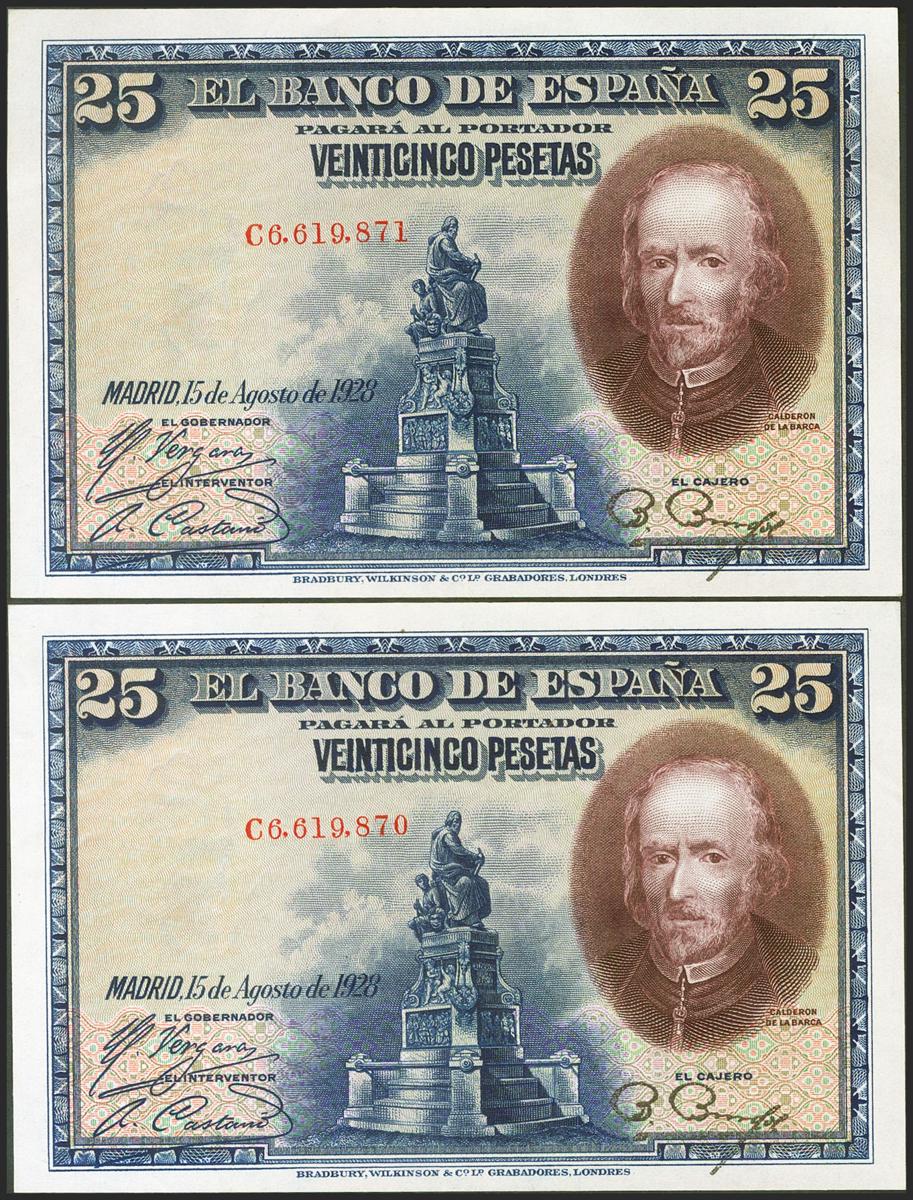 25 Pesetas. 15 de Agosto de 1928. Pareja correlativa. Serie C. (Edifil 2021: 353). Apresto original. SC-.