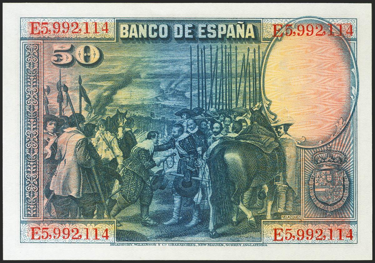 50 Pesetas. 15 de Agosto de 1928. Serie E. (Edifil 2021: 354). Apresto original. SC.