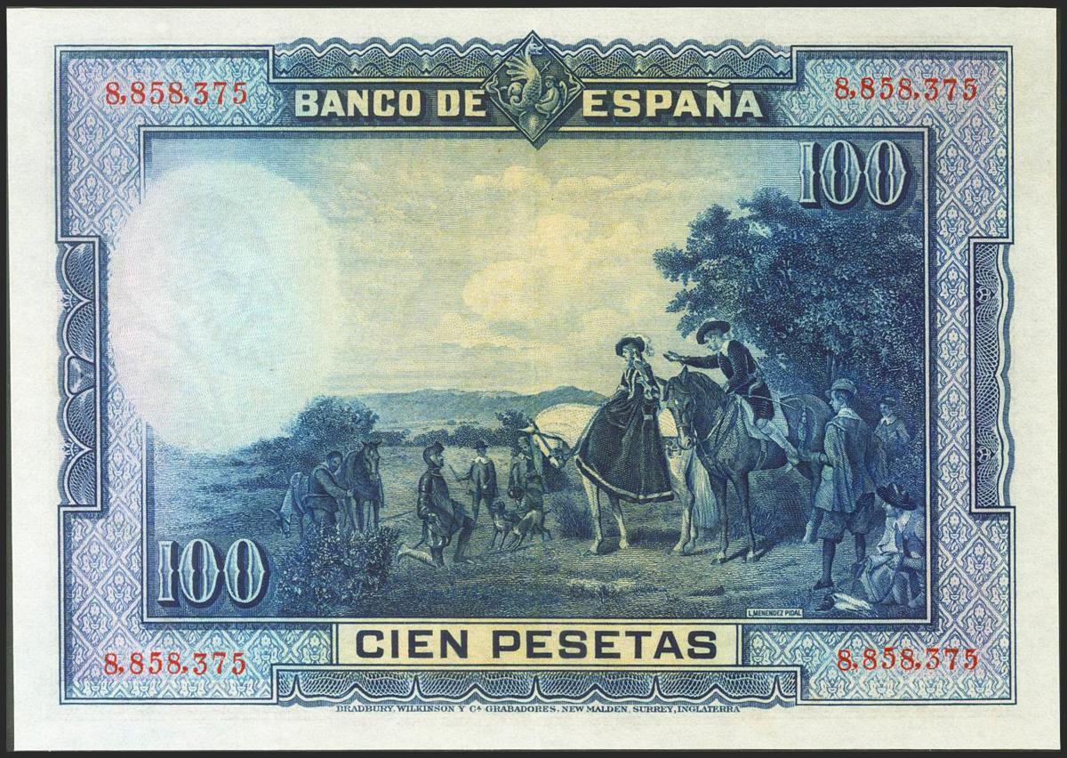 100 Pesetas. 15 de Agosto de 1928. Sin serie. (Edifil 2021: 355). Conserva gran parte de su apresto original. EBC.