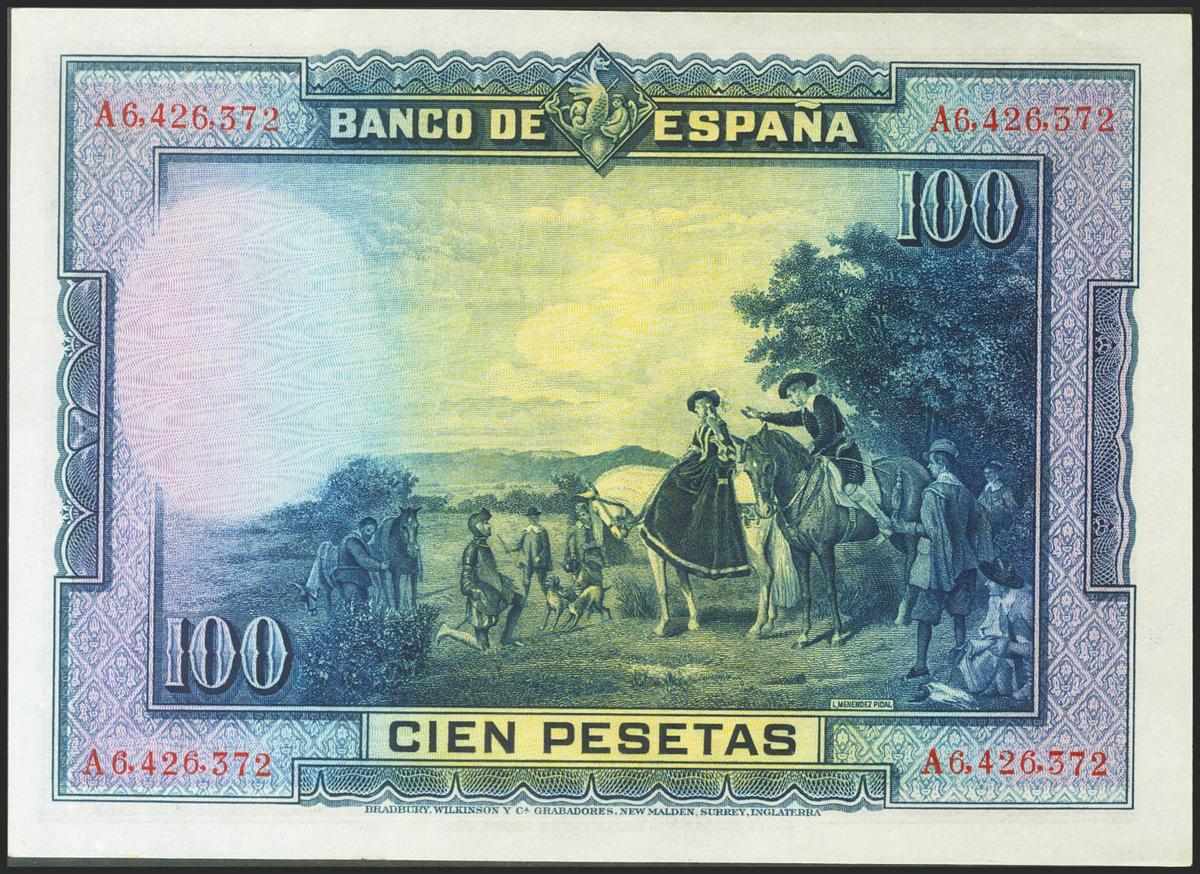 100 Pesetas. 15 de Agosto de 1928. Serie A. (Edifil 2021: 355a). Apresto original. SC.