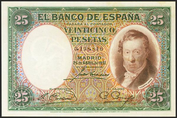 25 Pesetas. 25 de Abril de 1931. Sin serie. (Edifil 2021: 358). Conserva gran parte de su apresto original. EBC.