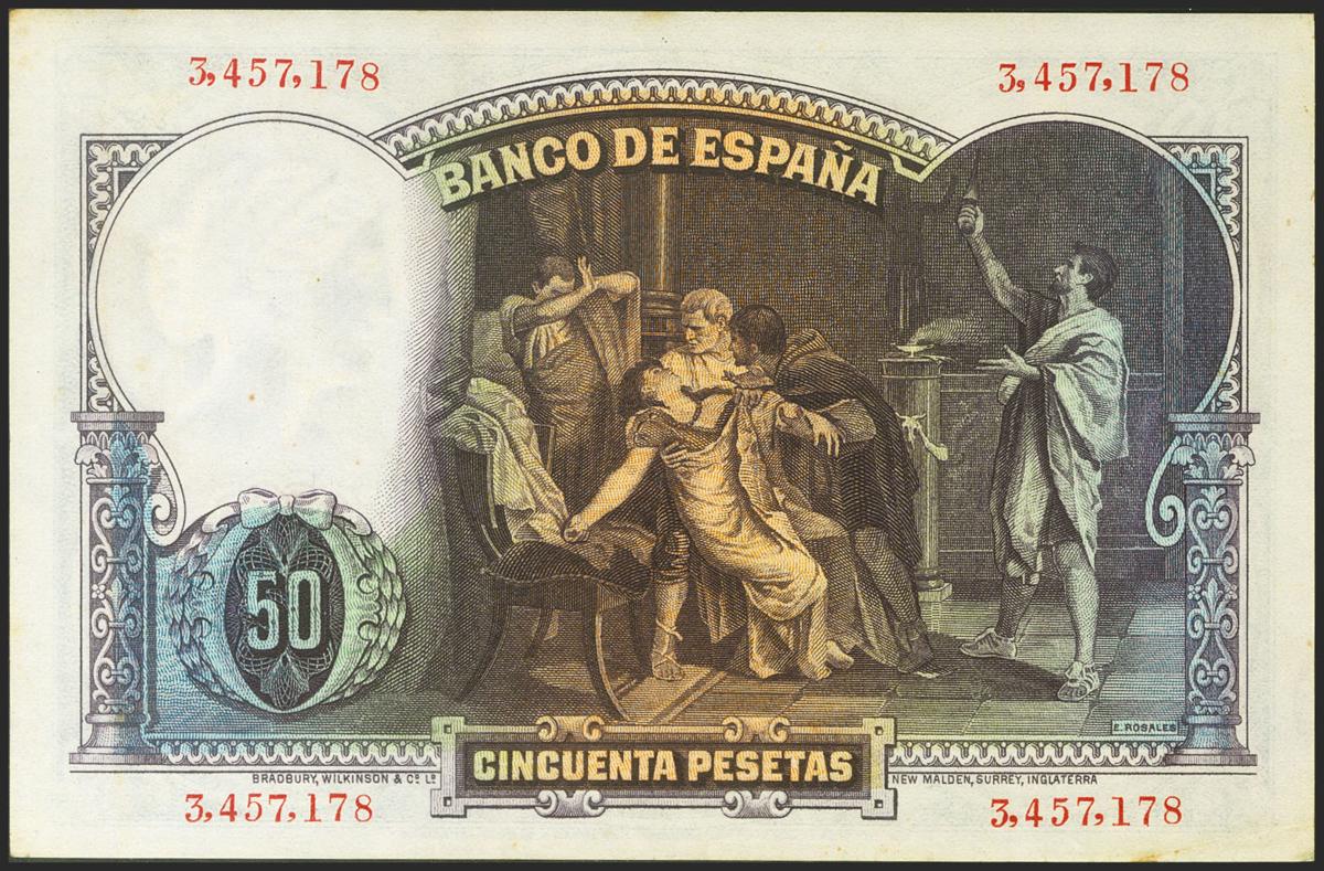 50 Pesetas. 25 de Abril de 1931. Sin serie. (Edifil 2021: 359). Manchitas de óxido, conserva todo su apresto original. SC--.