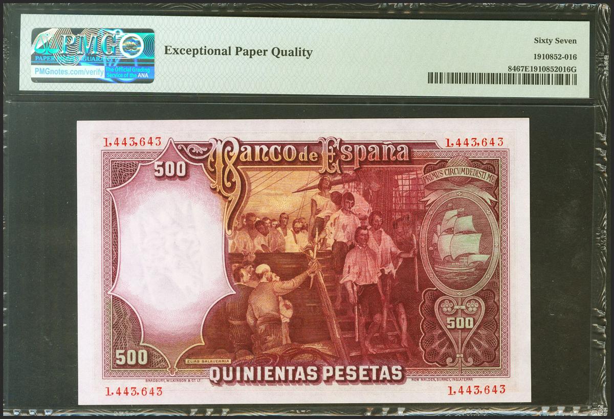 500 Pesetas. 25 de Abril de 1931. Sin serie. (Edifil 2021: 361, Pick: 84). Raro en esta excepcional calidad, apresto original. SC. Encapsulado PMG67EPQ.