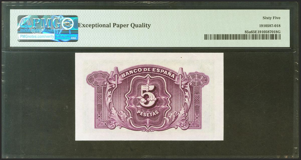5 Pesetas. 17 de Octubre de 1936. Serie K. (Edifil 2017: 363b). Apresto original .SC. Encpasulado PMG65EPQ