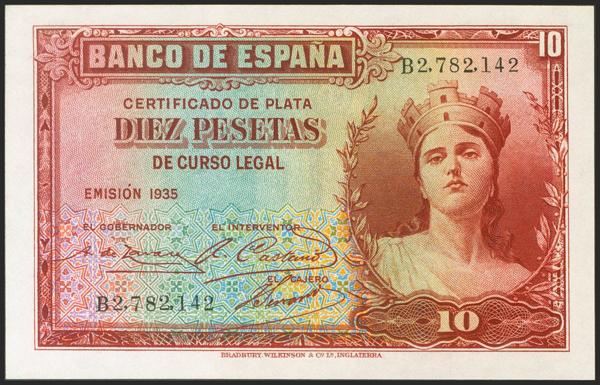 10 Pesetas. 1935. Certificado de Plata. Serie B. (Edifil 2021: 364a). Conserva todo su apresto original. SC.