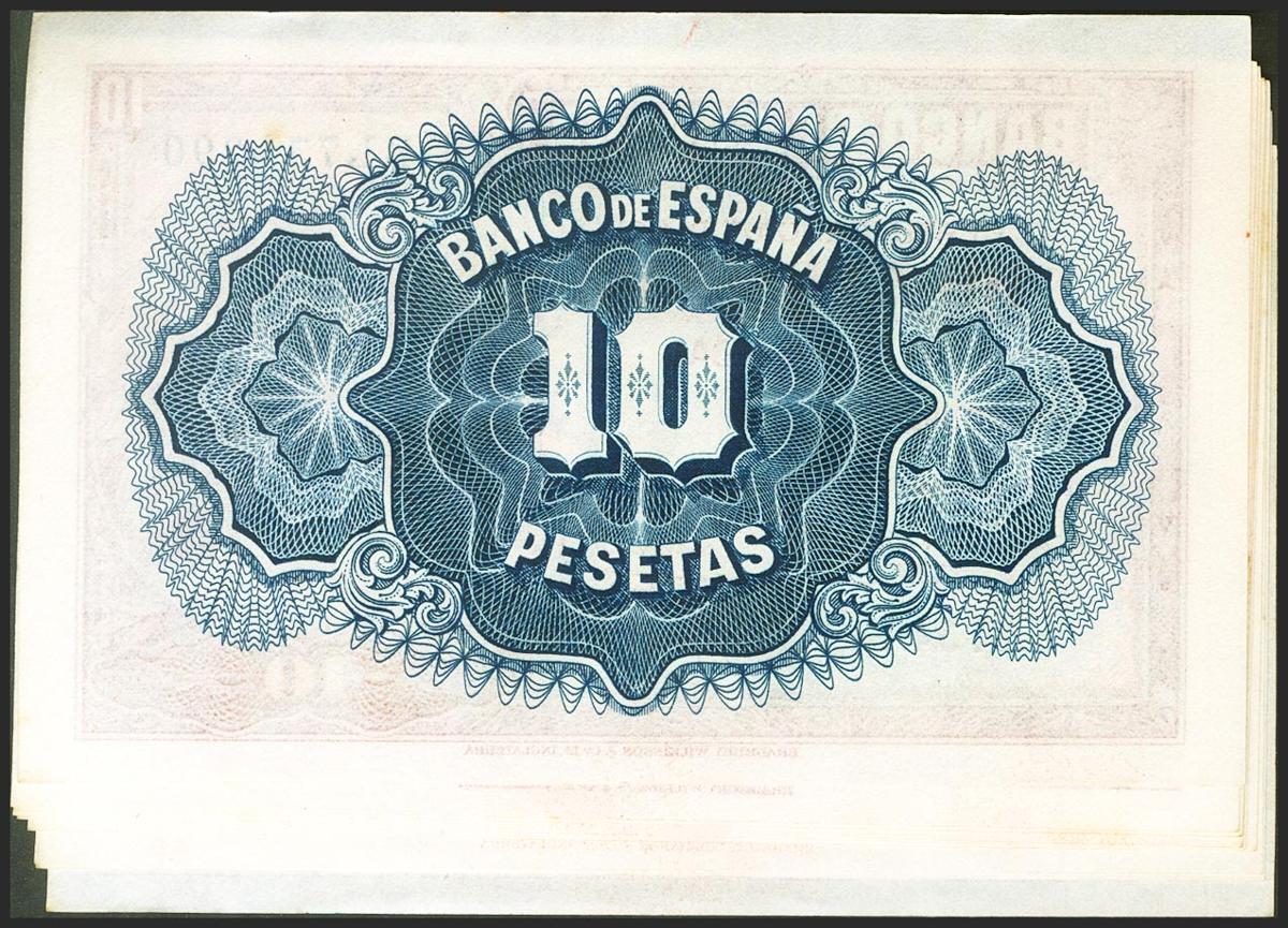 Conjunto de 9 billetes correlativos de 10 Pesetas Certificado de Plata emitidos en 1935 y con la serie B (Edifil 2021: 364a), conservando todo su apresto original. SC/SC-.