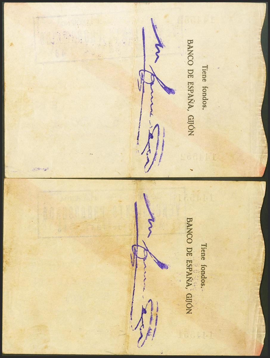 100 Pesetas. 5 de Noviembre de 1936. Sucursal de Gijón. Pareja correlativa. Sin serie. (Edifil 2021: 384). Rarísima pareja, especialmente en esta excepcional calidad para este billete, que siempre está en calidades bajas. EBC.