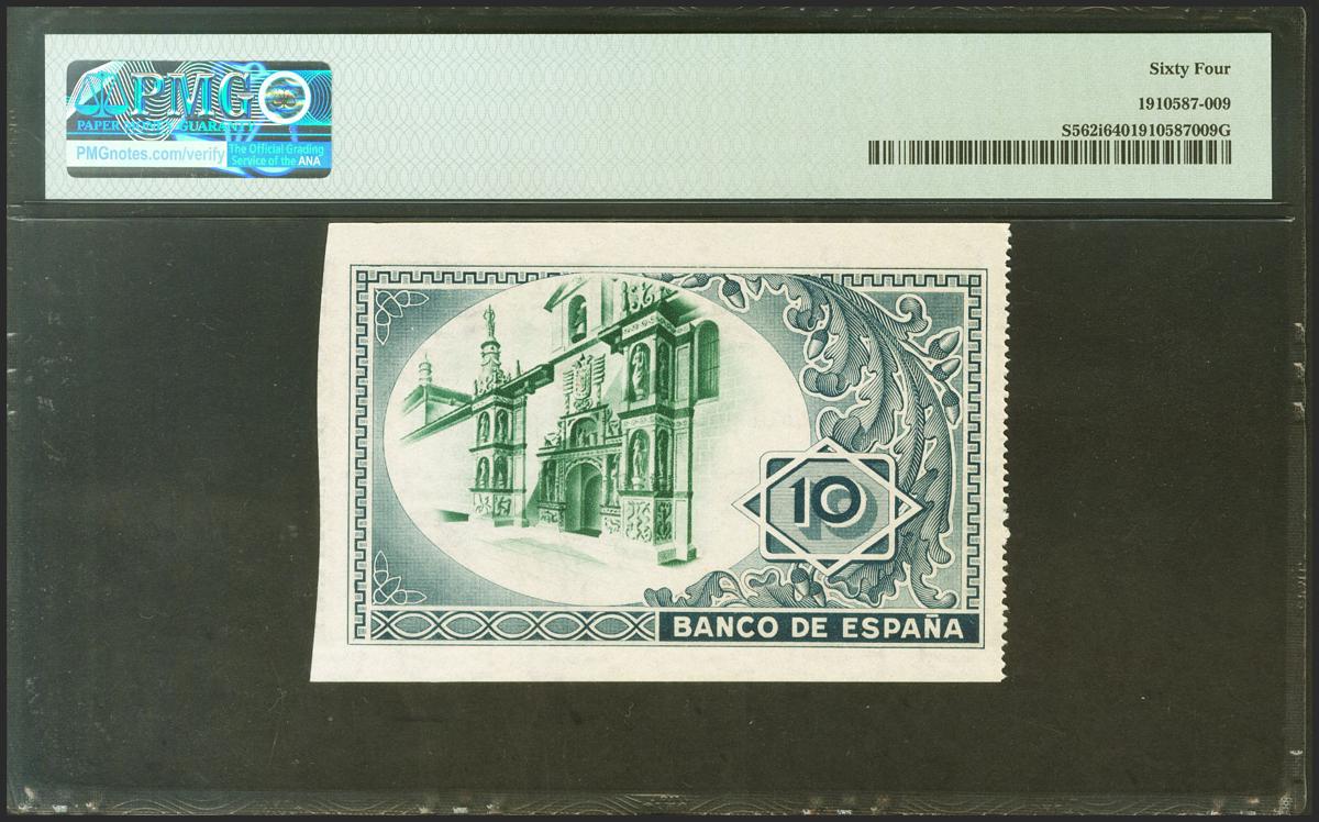10 Pesetas. 1 de Enero de 1937. Serie A y antefirma Banco Central. (Edifil 2021: 387c, Pick: S562i). SC. Encapsulado PMG64.