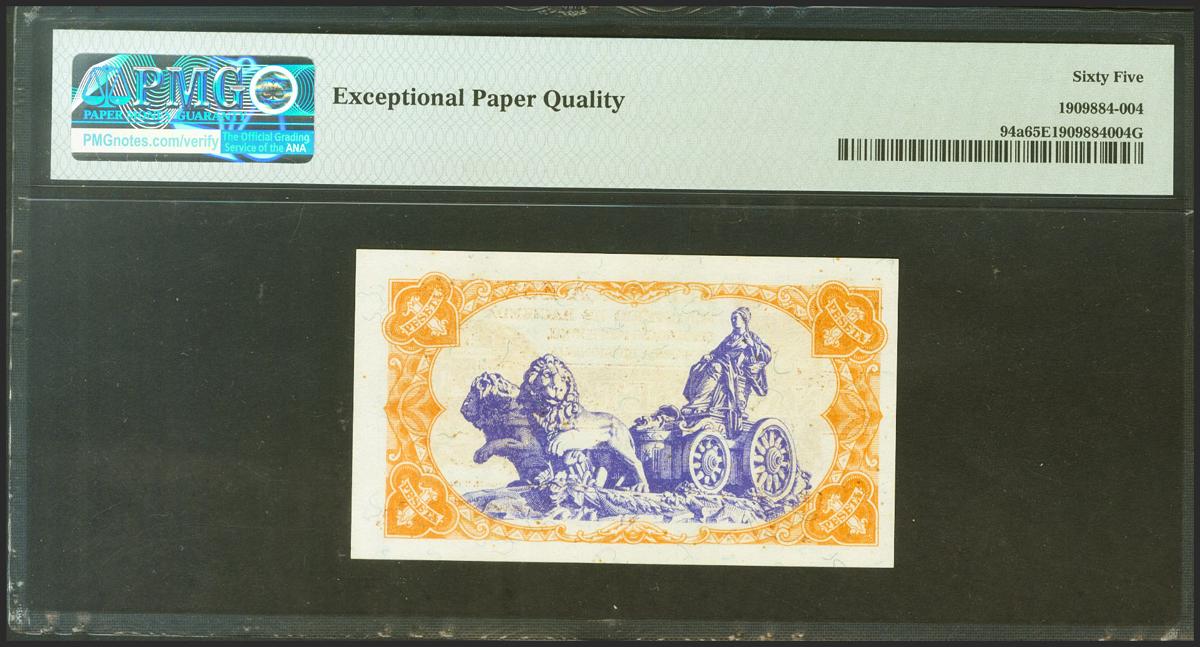 1 Peseta. 1937. Ministerio de Hacienda. Serie A y numeración baja. (Edifil 2021: 392, Pick: 94). Apresto original. SC. Encapsulado PMG65EPQ.
