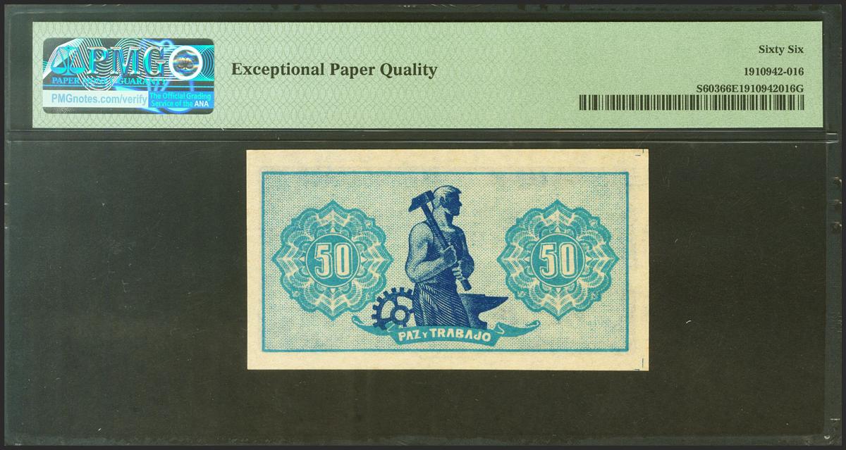 50 Céntimos. 1937. Asturias y León. Sin serie y numeración bajísima. (Edifil 2021: 396, Pick: S603). Rarísimo, especialmente en esta excepcional calidad, apresto original. SC. Encapsulado PMG66EPQ. (para hacernos una idea de la rareza de este billete en esta calidad, a día 1 de Agosto de 2022 en el registro público de PMG, este billete se trata del mejor conservado junto a otro billete).