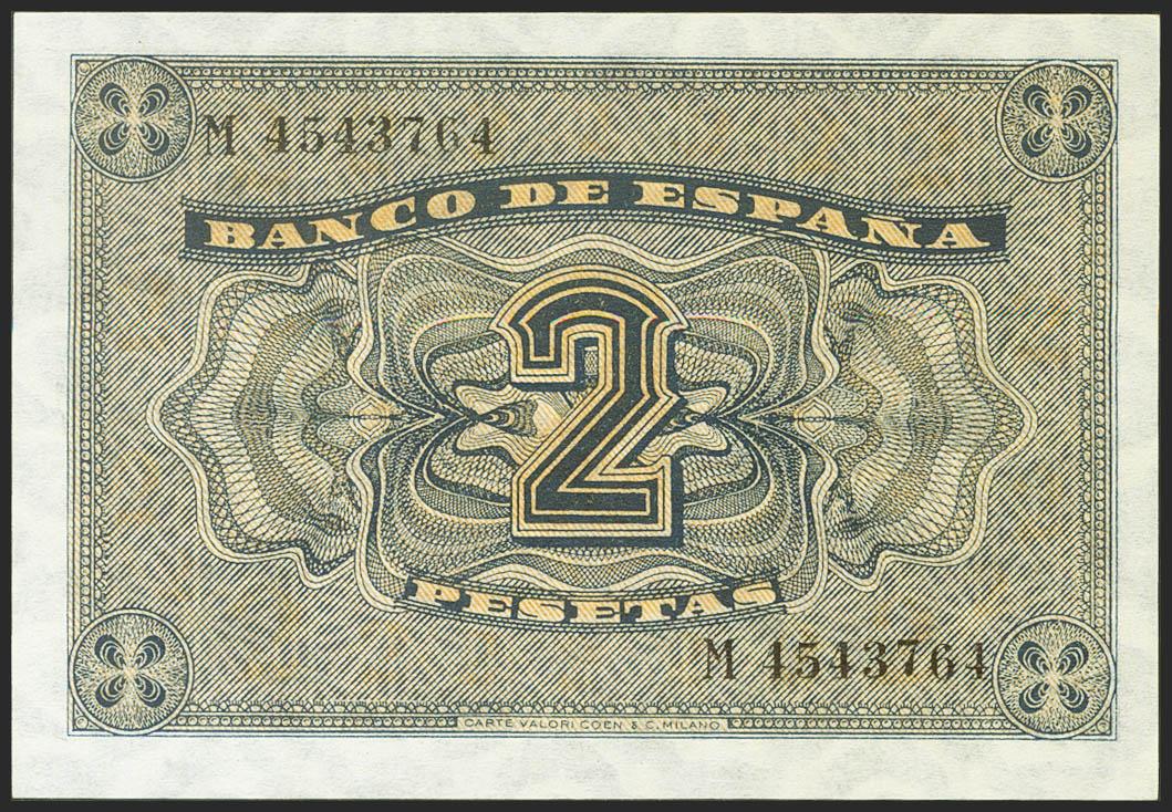 2 Pesetas. 30 de Abril de 1938. Serie M. (Edifil 2021: 429a). Apresto original. SC.