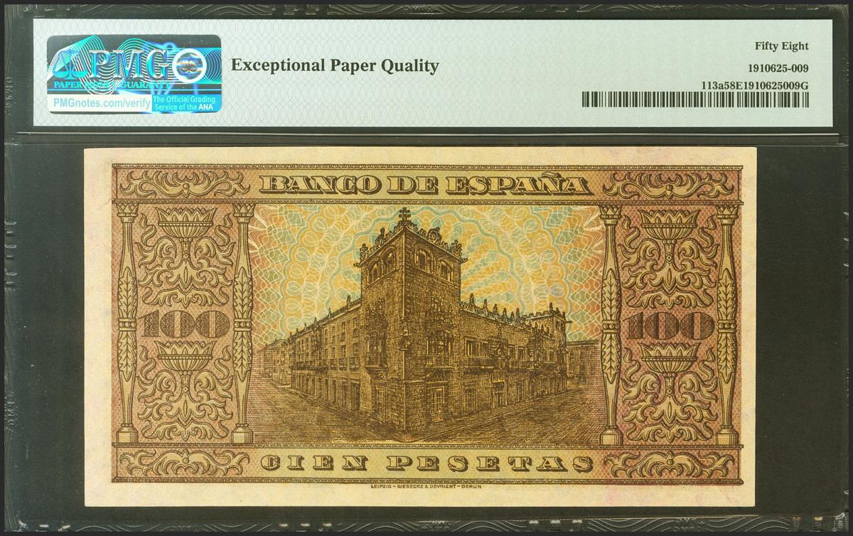 100 Pesetas. 20 de Mayo de 1938. Serie E. (Edifil 2021: 432a, Pick: 113a). Apresto original. EBC+++. Encapsulado PMG58EPQ.