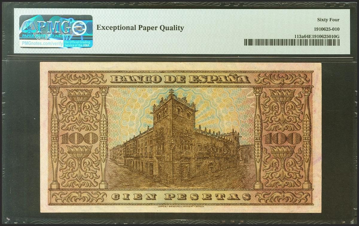 100 Pesetas. 20 de Mayo de 1938. Serie G. (Edifil 2021: 432a, Pick: 113). Inusual en esta excepcional calidad, apresto original. SC. Encapsulado PMG64EPQ.