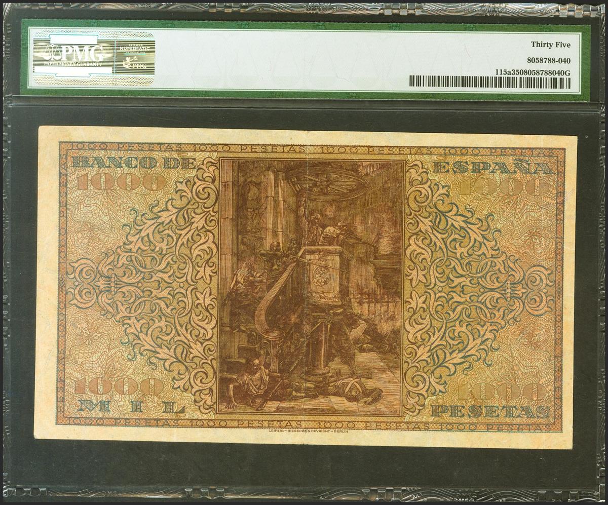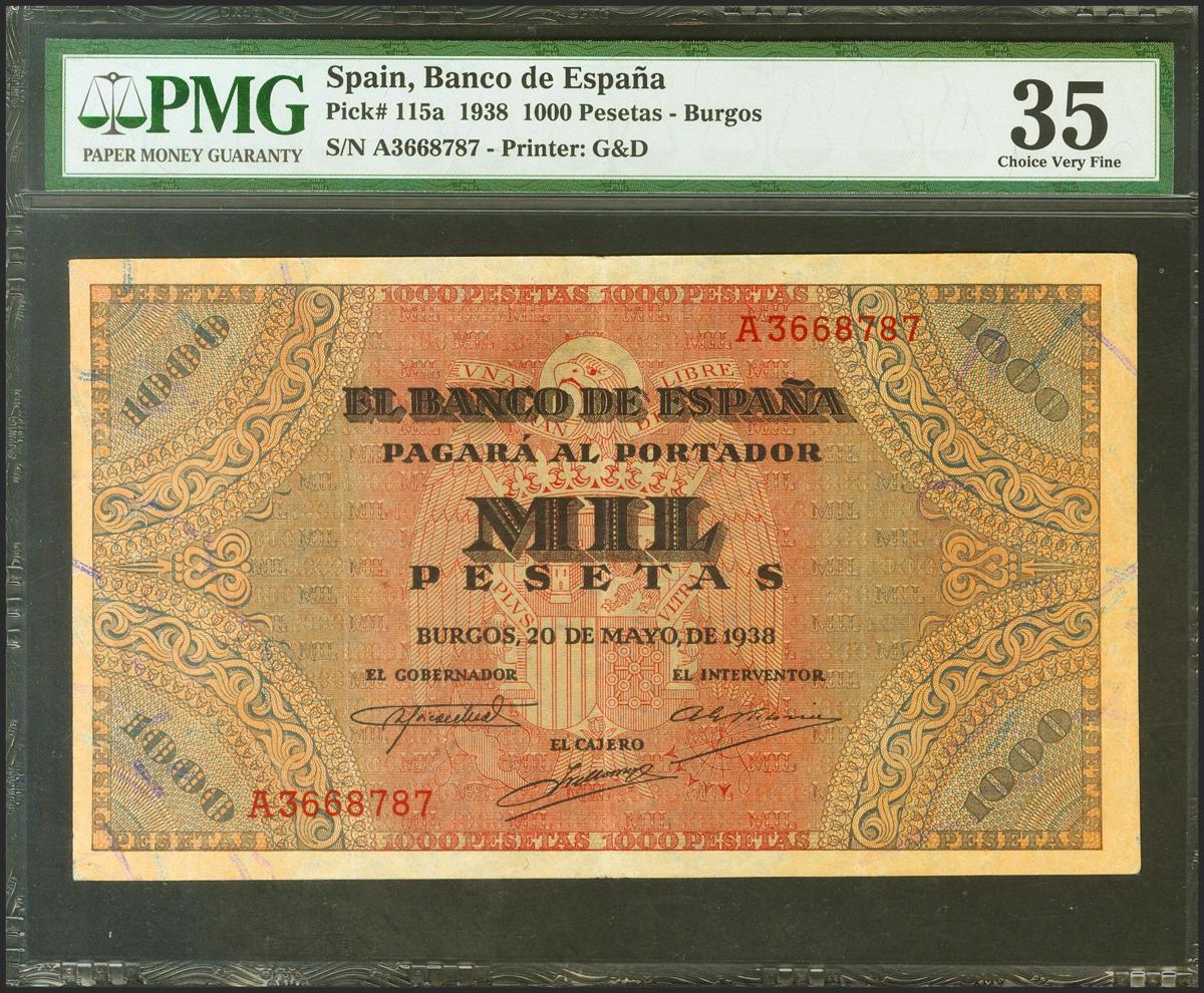 1000 Pesetas. 20 de Mayo de 1938. Serie A. (Edifil 2021: 434, Pick: 115a). MBC+. Encapsulado PMG35.
