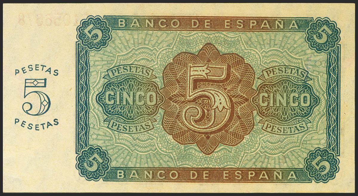 5 Pesetas. 10 de Agosto de 1938. Serie L. (Edifil 2021: 435a). Apresto original. SC.