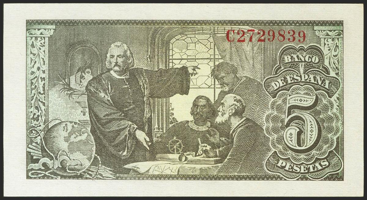 5 Pesetas. 13 de Febrero de 1943. Serie C. (Edifil 2021: 446a). Conserva gran parte de su apresto original. EBC++.