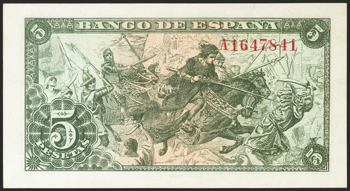5 Pesetas. 15 de Junio de 1945. Serie A. (Edifil 2021: 449a). Apresto original. SC.