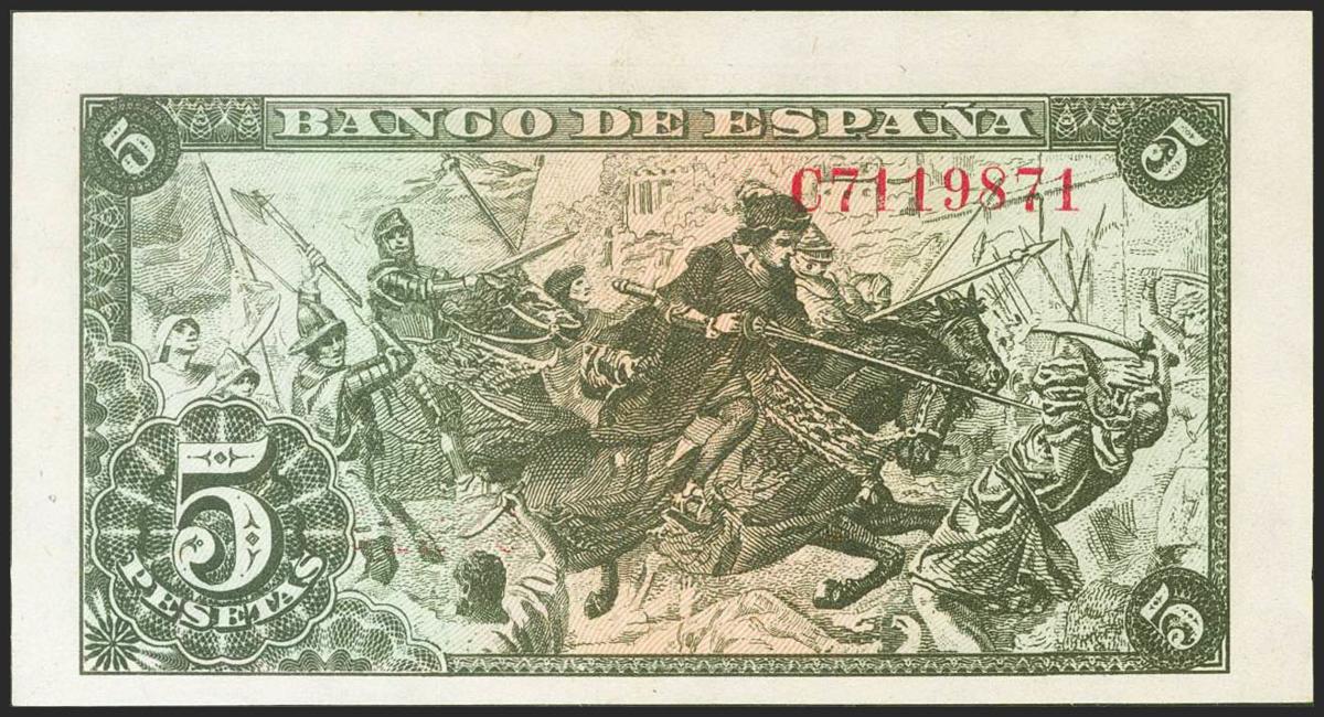 5 Pesetas. 15 de Junio de 1945. Serie C. (Edifil 2021: 449a). Apresto original. SC-.